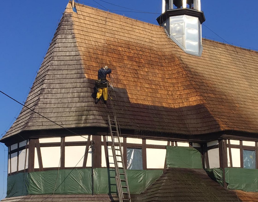 Pokrycie gontem łupanym dachów stosowano powszechnie mniej więcej do końca XVIII wieku. Dzisiaj to piękne i naturalne pokrycie możemy oglądać na zabytkowych budynkach takich jak dworki, pałace czy drewniane kościoły. Gont łupany to drewniany element powstały przez promieniste rozszczepienie kloca z drewna iglastego. Wysoka jakość drewna na etapie produkcji, odpowiednia obróbka, zastosowanie właściwych zasad montażu i wbudowanie odpowiednich materiałów towarzyszących gwarantuje wieloletnią eksploatację takiego pokrycia dachowego.